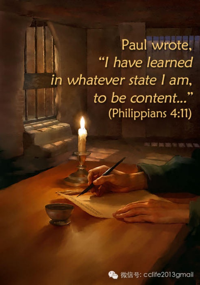 10 我靠主大大地喜乐,因为你们思念我的心,如今又发生。你们向来就思念我,只是没得机会。11 我并不是因缺乏说这话,我无论在什么景况,都可以知足,这是我已经学会了。12我知道怎样处卑贱,也知道怎样处丰富,或饱足,或饥饿,或有余,或缺乏,随事随在,我都得了秘诀。13 我靠着那加给我力量的,凡事都能作。14 然而你们和我同受患难,原是美事。