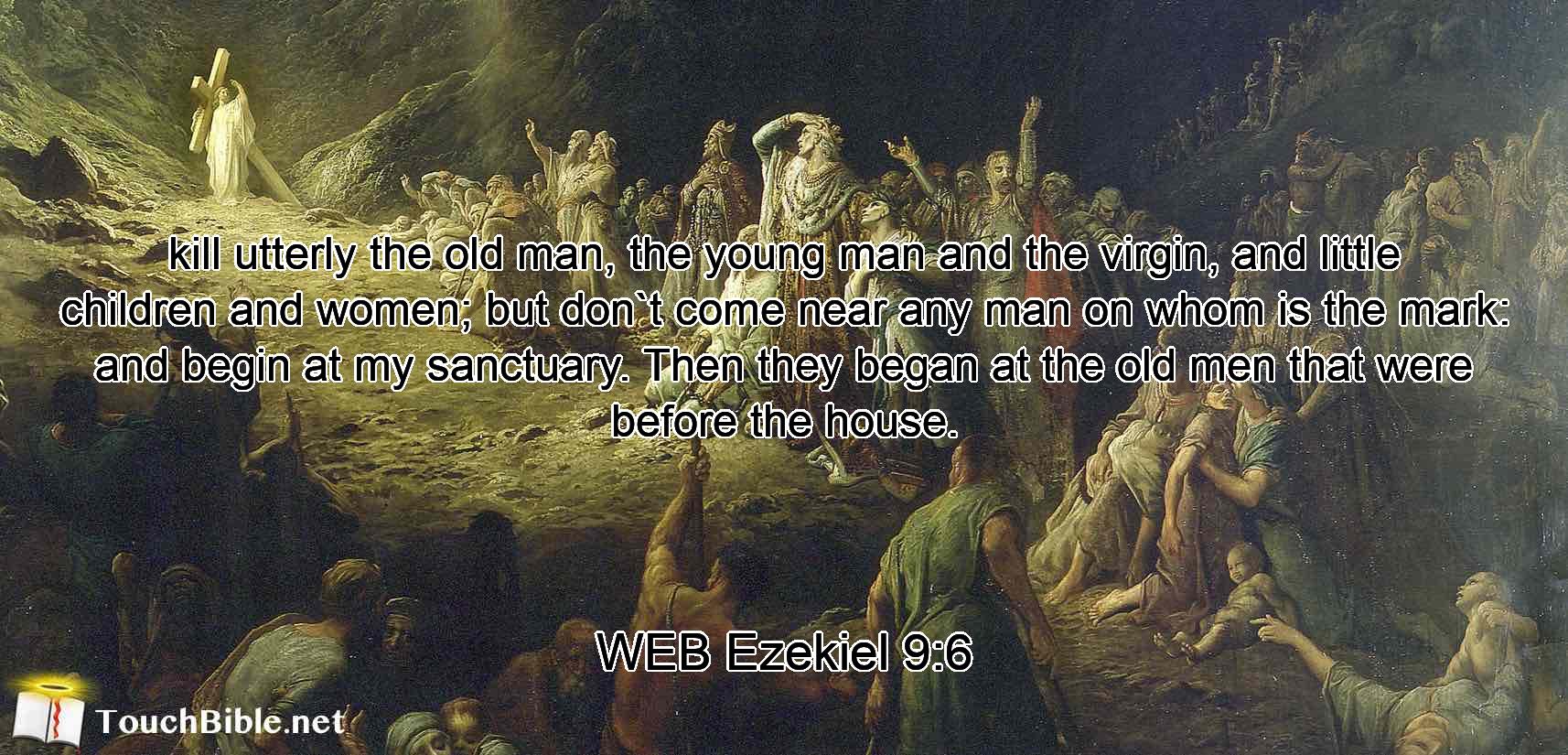 以西结在异象中见到圣殿内院中的可憎之物后,神差遣一个带着书写工具的人进入圣殿,神命令他说∶“你去走遍耶路撒冷全城,那些因城中所行可憎之事叹息哀哭的人,画记号在额上。”(以西结书9:4)神又差派其余的人进城,杀戳所有额上没有代祷印记的人。主说∶“从圣所前开始……”(9:6)。