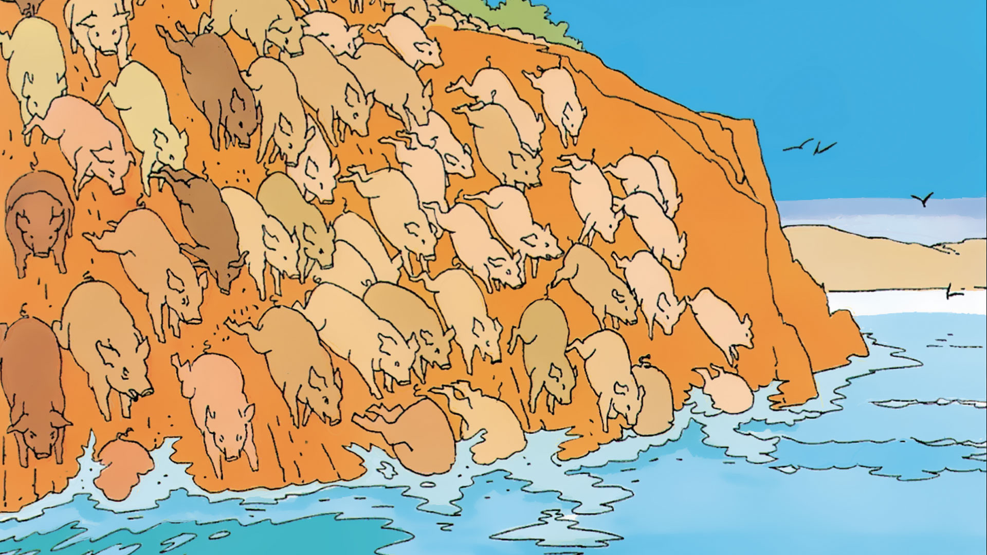 “那里有一大群猪,在山上吃食。鬼央求耶稣,准他们进入猪里去。耶稣准了他们。鬼就从那人出来,进入猪里去。于是那群猪闯下山崖,投在湖里淹死了。放猪的看见这事就逃跑了,去告诉城里和乡下的人。众人出来要看是什么事。到了耶稣那里,看见鬼所离开的那人,坐在耶稣脚前,穿着衣服,心里明白过来,他们就害怕。格拉森四围的人,因为害怕得很,都求耶稣离开他们。”(路加福音8:32–37)