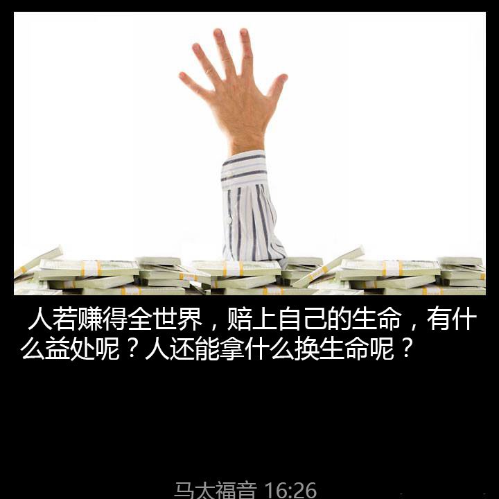 但耶稣说,“人若赚得全世界,赔上自己的生命,有什么益处呢?人还能拿什么换生命呢?”(马太福音16:26)