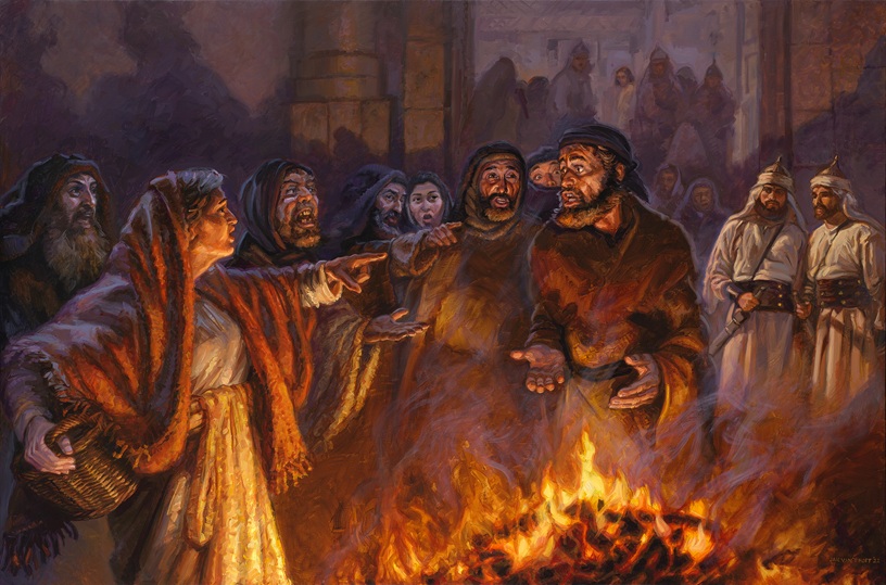 我们看到,勇敢、刚强、对主忠诚的彼得,转眼之间就跌倒了,而且跌倒得厉害——为了切断自己与拿撒勒人耶稣的关系,他竟然发咒起誓说,“我不认得那个人!”看到这里,我们会问:说“我就是必须和你同死,也总不能不认你”的彼得,和“发咒起誓说我不认得那个人”的彼得,是同一个人吗?是的,是同一个人。正因为是同一个人,前后的冲突与反差才显得如此之大,以至于我们必须进一步问:这是为什么呢?