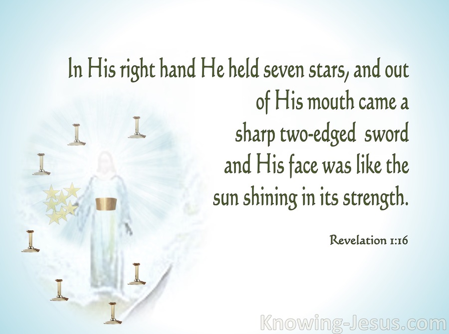 今日经文:“我转过身来,要看是谁发声与我说话。既转过来,就看见七个金灯台,灯台中间有一位好像人子,身穿长衣,直垂到脚,胸间束着金带。祂的头与发皆白,如白羊毛,如雪,眼目如火焰,脚好像在炉中锻炼的光明的铜,声音如同众水的声音。祂右手拿着七星,从祂口中出来一把两刃的利剑,面貌如同烈日放光。”(启1:12—16)