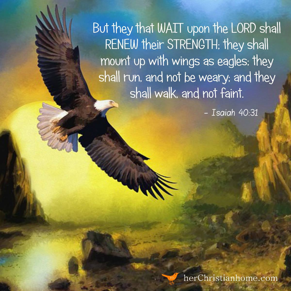 今日经文:那等候耶和华的,必从新得力,他们必如鹰展翅上腾;他们奔跑却不困倦,行走却不疲乏。(以赛亚书40:31)