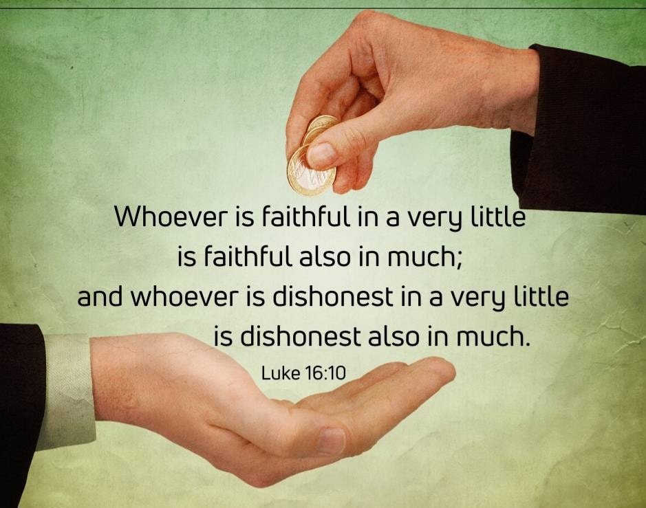 “人在最小的事上忠心,在大事上也忠心;在最小的事上不义,在大事上也不义。”(路十六10)