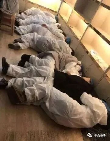 这些医生穿着防护服直接睡在地板上,他们觉得有得睡就是奢侈的了!