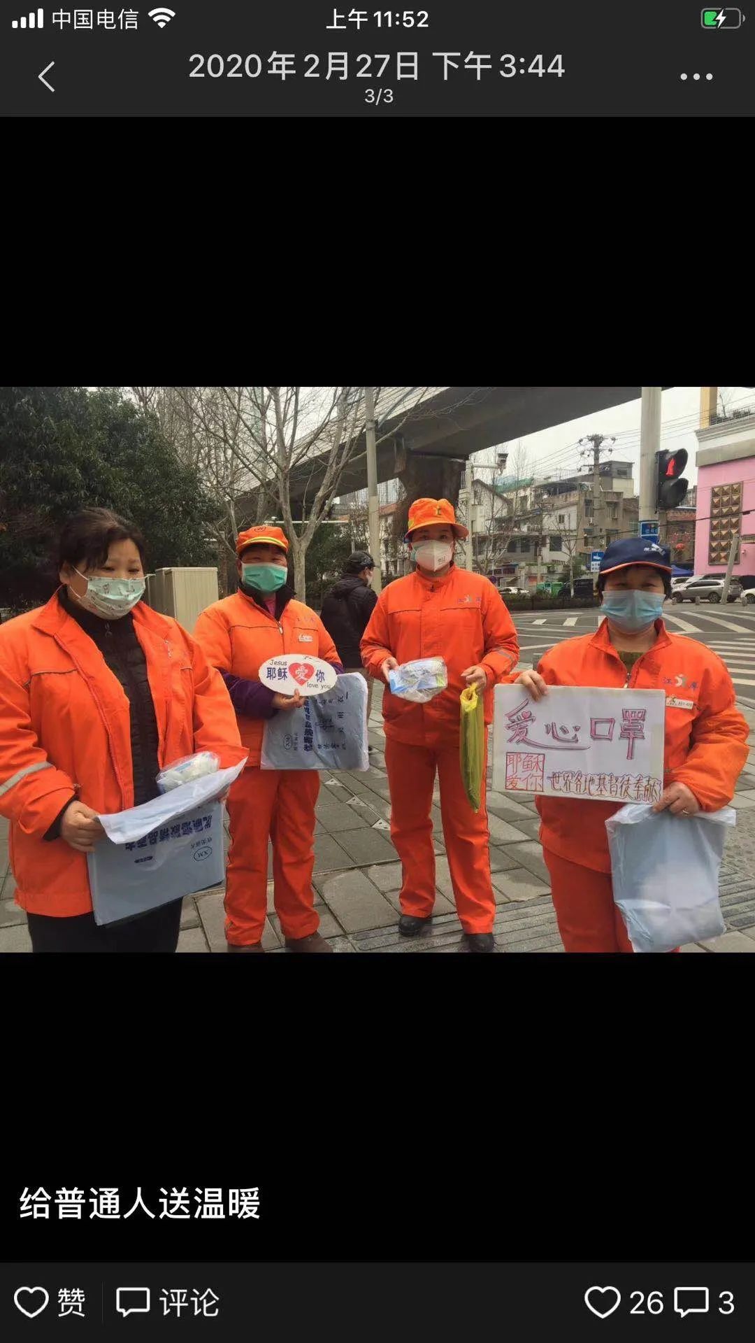 二十四日第一批口罩到货,这天恰好是我们夫妻结婚纪念日。八千个口罩分配到各片时,我和妻子晚上开车送口罩到汉阳片一个弟兄家。寒风冷雨,街上几乎没有行人和车辆。下午已经录制好针对瘟疫的福音播报,夜幕中第一次在汉阳麒麟路马路和小区响起。感觉面对瘟疫的福音争战正式打响。行人接到口罩和福音单张时,好像给他们雪里送炭一样。一对母女接到五个口罩,母亲说“到处买不到口罩,非常感谢,非常感谢”。我们发给单张劝她信耶稣,她连连点头。