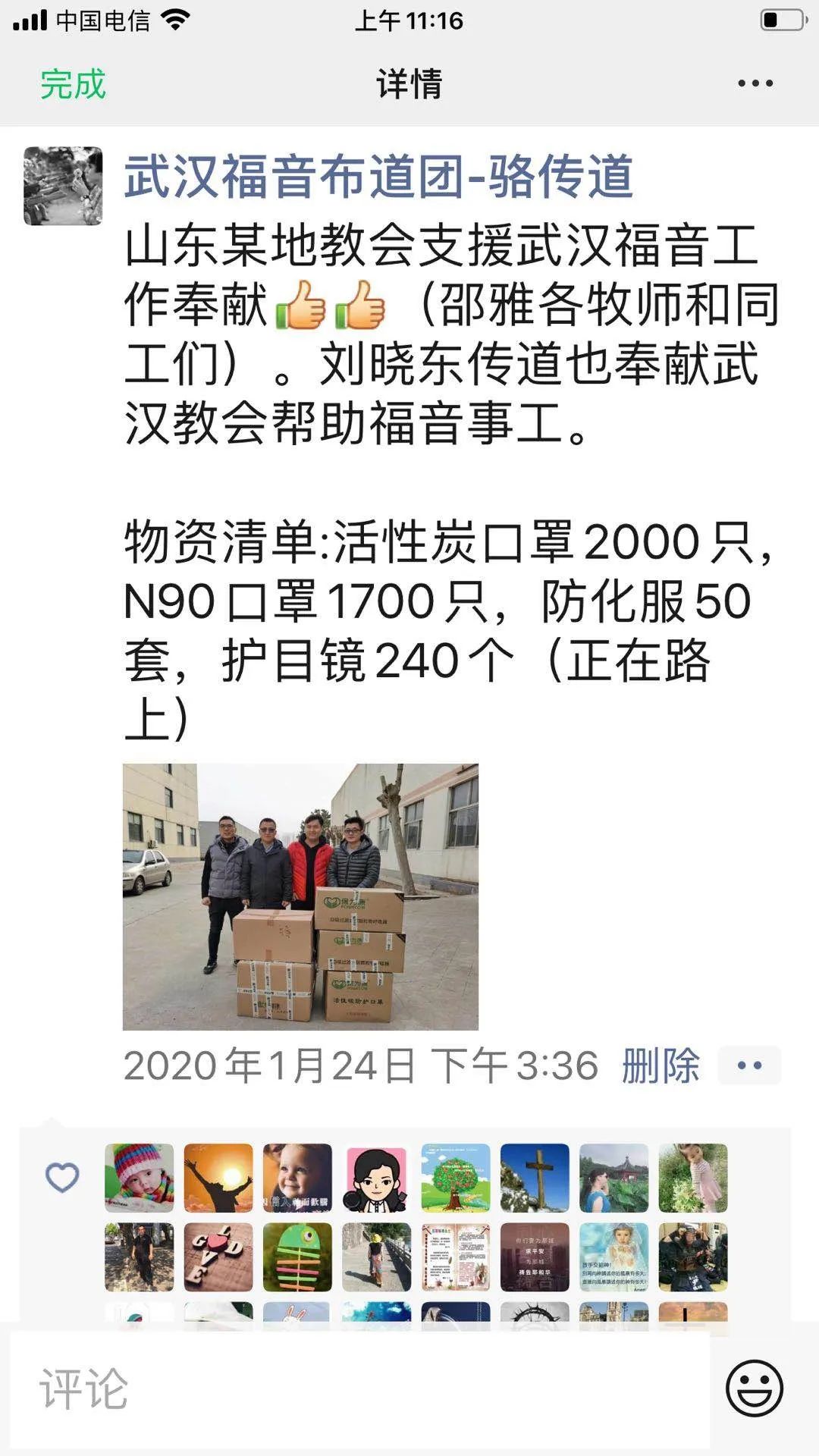 本地十几家教会缺少防护品求助,也及时给予了帮助。激励了其他教会一些肢体走出来抢救灵魂。