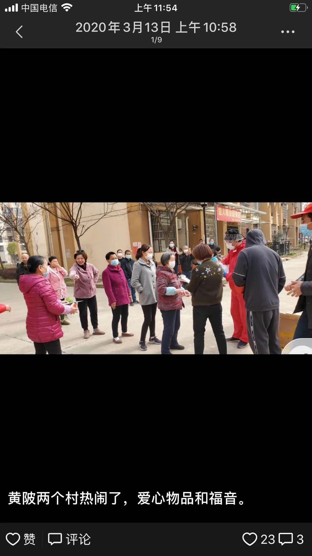 武汉周边农村居民几乎没有什么防护品。各村都有感染,情势危急。教会组织三支援助队,分别送去大量的防护品和方便面。四十多个村庄,村干部配合逐家发放口罩和方便面,逐户传福音。武汉农村被福音搅动,过去异端在这里造成的恶劣影响,这次通过爱心援助和传福音,使许多农村居民对基督信仰认识改变。到处都听到“感谢上帝,感谢耶稣”的赞美声。