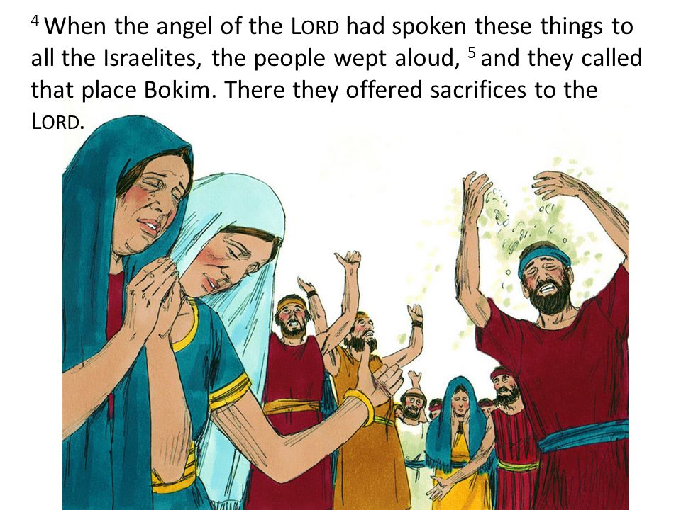 “百姓就放声大哭”,还好,他们还没有心硬到对指责无动于衷,在号哭之余尚能献上祭物,但一时的冲动并不能担保日后的贞洁,未几以色列人又陷入罪中,难怪圣经说“听命胜于献祭”(撒上15:22)。