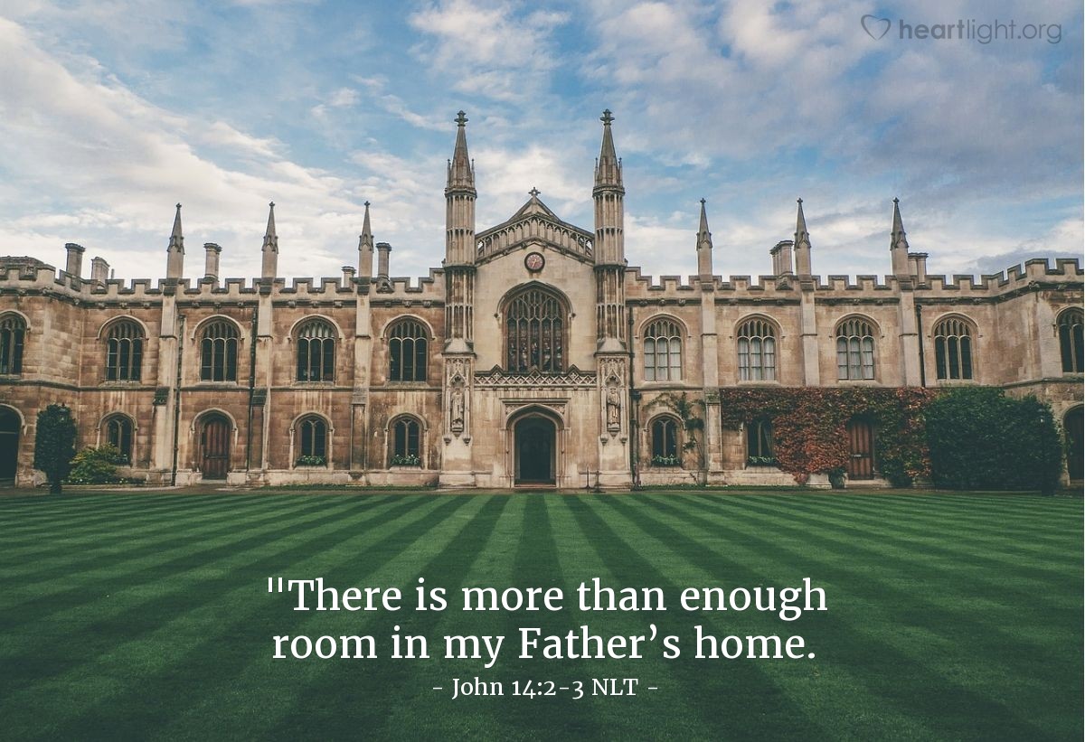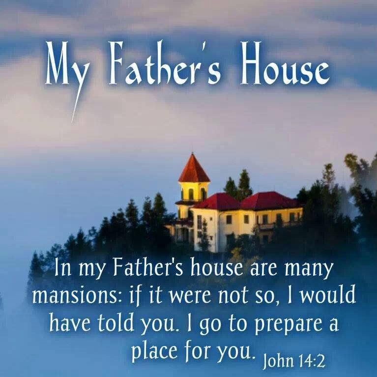 “在我父的家里,有许多住处,若是没有,我就早已告诉你们了;我去原是为你们预备地方去,我若去为你们预备了地方,就必再来接你们到我那里去;我在哪里,叫你们也在哪里。”(约十四2–3)