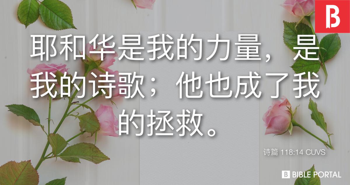 “耶和华是我的力量,是我的诗歌,祂也成了我的拯救。”(诗118:14)