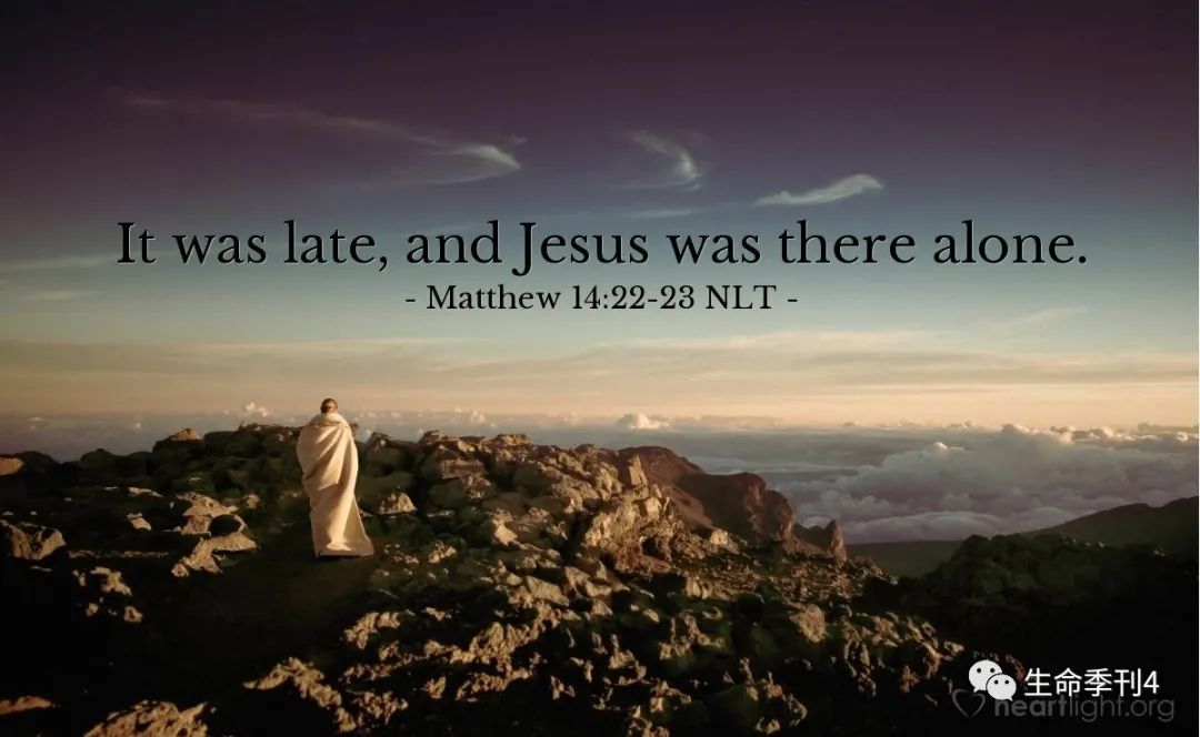 “散了众人以后,祂就独自上山去祷告。到了晚上,只有祂一人在那里。”(太14:23)
