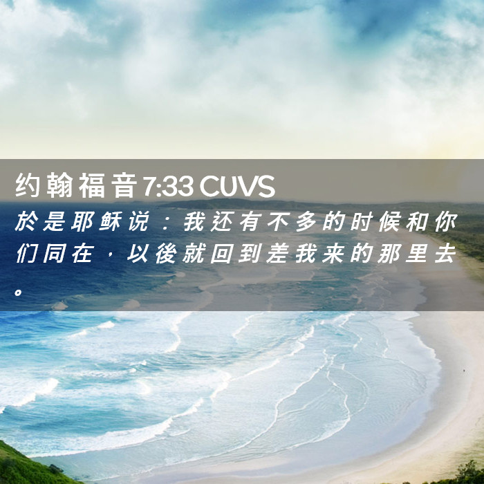 “于是耶稣说,‘我还有不多的时候和你们同在,以后就回到差我来的那里去。你们要找我,却找不着。我所在的地方你们不能到。’”(约7:33–34)